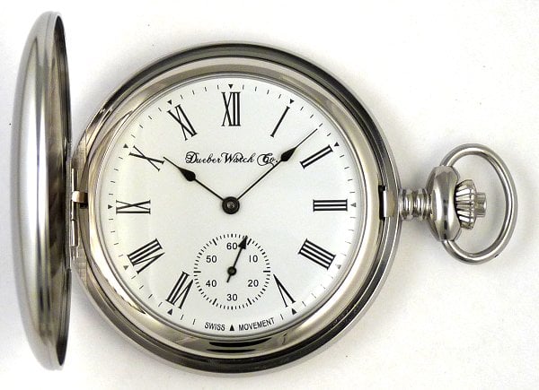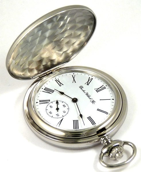 Dueber Model 26 Pocket Watch with Swiss Made Mechanical Movement, Chrome Plated Steel Case
